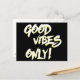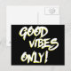Let everyone around you know that the energy field around you is only conductive to good vibes and good vibes only. This design features those very words in a fun yet grungy text.