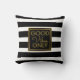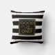 Good Vibes Only Modern Black and White Stripe Gold Cushion