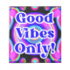 A super fun, colourful, neon 80s / 90s design saying Good Vibes Only! Retro and bright, using pinks and blues and yellow and aqua and purple and black!