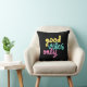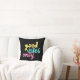 This throw pillow design features a playful "Good Vibes Only" message in bold, colourful text with a groovy vibe. The vibrant pastel colours of yellow, teal, and pink stand out beautifully against a solid black background, making the words pop. The lettering has a fun, handwritten feel, adding a touch of positivity and warmth to any space. Perfect for adding a cosy and cheerful vibe to your home décor.
