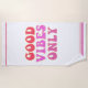 NewParkLane - Cute VSCO Girls' Beach Towel, with 'Good Vibes Only' quote in fun retro 60's typography, in vibrant summer shades of pinks and purples.