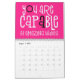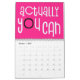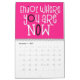 Good vibes calendar with a positive message for every month of the year in bold funky typography. The front and back covers have a black background, and inside hot pink, with white typography with hot pink or black highlights accordingly. You can change the background colours if you so wish via the Click to Customise Further option.