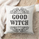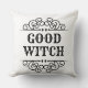 Are you a good witch or a bad witch? Celebrate Halloween in style with this custom "Good Witch" typography throw pillow design that can be customized with your preferred Good or Bad or Other Witch text. White background (can be customized) with black decorative text and scroll design.