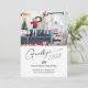 I think we are all ready to have 2020 over. Beautifully designed holiday card features script and modern typography. Add your favourite photo. Back of the card is solid blue with white greenery in the centre.