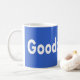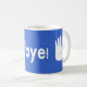 Famous Blue background with “GoodBye!” printed in white & simple white waving hand.