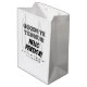 Goodbye tension hello pension funny retirement Medium Gift Bag. Black and white typography design with personalised name. Add your own greeting or quote. Change into any colour. Double sided print. Add your own present inside. Fun bags for retired friends, retiring family, coworker, boss, employee, colleague, teacher, coach, husband, wife etc.