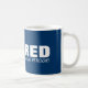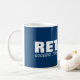Goodbye tension Hello pension! Cool retirement joke mug with blue and white colours. Funny quote for retired men and women. Job retiring gift idea for employees. Custom background colour.