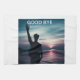 This image depicts the silhouette of a man standing in shallow water with his arm raised towards the sky. The background showcases a serene sunset , with the horizon blending shades of pink, orange, and deep blue. The calm water reflects the colours of the sky, creating a tranquil and dreamlike atmosphere.