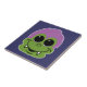 Adorable smiling goblin has green skin, funky purple hair, fangs and big sweety eyes. A fun gift for Halloween or every day.
