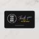 This modern and minimalist thank you business card is the perfect way to show your appreciation to customers and leave a lasting impression. The clean, black design features a space for your logo, a handwritten "Thank You" message in a stylish script, and your company website for easy contact.