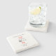 The coasters are gorgeous, a quality feel and heavy weight. They look like a precious archeological find. A rustic stone juxtaposed with a modern floral black and white print. I like the way the print goes slightly imperfect on the cut stone edges giving them a kind-of natural beauty.