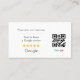 Professional business card featuring a Google Review QR code designed to help businesses collect more customer reviews quickly and easily. Customers can scan the QR code to leave a Google review in seconds. Ideal for small businesses, service providers, retail shops, salons, restaurants, and local professionals focused on reputation growth. Fully editable text and QR destination with a clean, print-ready layout.