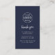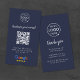 A simple custom navy blue business card, order insert enclosure card or visiting handout card, in a modern minimalist style, designed to feature a scannable QR code that links directly to your Google Reviews page. This versatile template can be personalized with your company logo, graphic, or photo, along with your QR code and a custom message that encourages customers to share feedback. The review platform logo can also be swapped for Yelp, TripAdvisor, Facebook, or any other site to create a bespoke and professional design that suits your business. Perfect for cafes, salons, boutiques, offices, and service-based brands, this clean display helps boost engagement and grow your reputation. Tip: Use the free GatherUp Review URL Generator to create a direct link to your review page before generating your QR code.
