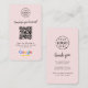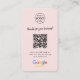 A simple custom blush pink business card, order insert enclosure card or visiting handout card, in a modern minimalist style, designed to feature a scannable QR code that links directly to your Google Reviews page. This versatile template can be personalized with your company logo, graphic, or photo, along with your QR code and a custom message that encourages customers to share feedback. The review platform logo can also be swapped for Yelp, TripAdvisor, Facebook, or any other site to create a bespoke and professional design that suits your business. Perfect for cafes, salons, boutiques, offices, and service-based brands, this clean display helps boost engagement and grow your reputation. Tip: Use the free GatherUp Review URL Generator to create a direct link to your review page before generating your QR code.