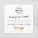 A simple custom white square business card, order insert enclosure card or visiting handout card, in a modern minimalist style, designed to feature a scannable QR code that links directly to your Google Reviews page. This versatile template can be personalized with your company logo, graphic, or photo, along with your QR code and a custom message that encourages customers to share feedback. The review platform logo can also be swapped for Yelp, TripAdvisor, Facebook, or any other site to create a bespoke and professional design that suits your business. Perfect for cafes, salons, boutiques, offices, and service-based brands, this clean display helps boost engagement and grow your reputation. Tip: Use the free GatherUp Review URL Generator to create a direct link to your review page before generating your QR code.