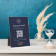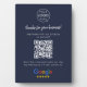 A simple custom navy blue scan to leave a google review QR code business thank you Tabletop Plaque with Easel in a modern minimalist style. The versatile template can easily be updated with your company logo, graphic or photo, QR code and custom text. The review site logo can easily be replaced with another (eg. Yelp, TripAdvisor, Facebook) to make a truly bespoke professional design to help you grow your business! I recommend you try ‘Gatherup Review URL Generator’ which is a free tool that allows you to create a website address that takes customers directly to the ‘write a review’ page for your business. You can then create a QR code online for free with the new direct URL for your business reviews! Need help? Feel free to contact me using the message button. I am happy to help with your personalization such as adding different icons, QR code generation and more!