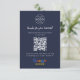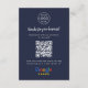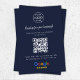 A simple custom navy blue order packaging insert enclosure card or visiting handout card, in a modern minimalist style, designed to feature a scannable QR code that links directly to your Google Reviews page. This versatile template can be personalized with your company logo, graphic, or photo, along with your QR code and a custom message that encourages customers to share feedback. The review platform logo can also be swapped for Yelp, TripAdvisor, Facebook, or any other site to create a bespoke and professional design that suits your business. Perfect for cafes, salons, boutiques, offices, and service-based brands, this clean display helps boost engagement and grow your reputation. Tip: Use the free GatherUp Review URL Generator to create a direct link to your review page before generating your QR code.