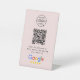A simple custom feminine blush pink 4x6 business tabletop plastic pedestal sign in a modern minimalist style, designed to feature a scannable QR code that links directly to your Google Reviews page. This versatile template can be personalized with your company logo, graphic, or photo, along with your QR code and a custom message that encourages customers to share feedback. The review platform logo can also be swapped for Yelp, TripAdvisor, Facebook, or any other site to create a bespoke and professional design that suits your business. Perfect for cafes, salons, boutiques, offices, and service-based brands, this clean display helps boost engagement and grow your reputation. Tip: Use the free GatherUp Review URL Generator to create a direct link to your review page before generating your QR code.