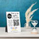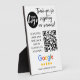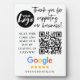 Modern, trendy Google Reviews Request plaque. Design features trendy typography script '' thank you for supporting our business'' with your logo, website, google logo and qr code with review request.