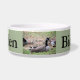 I absolutely love this product! I was a little concerned prior to buying it, but I was blown away by the quality of the item. The bowl is sturdy and arrived clean without any damage. The printing was crisp and clean and looks Better than I hoped! My dogs immediately knew these were for them and get very excited to pose with their new bowls! Definitely recommend and will purchase more in the future! The printing is crisp and well done. It looks absolutely beautiful on the bowl, and I can tell that it’s going to hold up well over time.