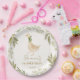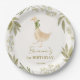 Goose nursery rhymes birthday party monogrammed paper plates template , pastel boho cute goose with a ribbon birthday party personalised paper plates  boho birthday party printed plates nursery rhymes party printed plates gender neutral birthday party customised paper plates personalised table decorations goose party supplies