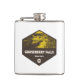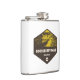 The flask itself is fine. It’s a cheap flask, obviously bought in bulk, however am prepared to overlook that. Given that it is a personalized item, I would have liked to have seen gift boxing instead of the generic packaging. Terrible printing, and/or quality. It’s a cheap, tacky vinyl. It is not cut straight and is also applied in a way that it is overhanging the bottom, causing the glue to catch on items and it will eventually roll and tear, damaging the wrap.