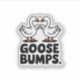 Spread some positivity with this feel-good "Goosebumps" sticker! Featuring two geese giving each other a fist bump, this design is a punny play on words that's sure to brighten your day. Perfect for anyone who loves a good laugh and appreciates the quirky side of life. This durable vinyl sticker is ideal for laptops, water bottles, car windows, and any other smooth surface that needs a dose of goofy fun.
