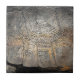 The original, abstract design on this small Ceramic Tile was made from an original photograph by HomeWare of a gopher tortoise. The design is a closeup view of the tortoise shell. The linear pattern of the shell has been accented, shown by the sketchy black lines over almost metallic looking colours of silver grey and gold. The overlapping parts of the shell, over the black shadow, make it look like the armour, which it is for the tortoise. These contemporary colours, earth tones, create a modern design from nature, chic, naturally.