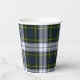 Plaid paper cup with the traditional Scottish blue, green, yellow, black, and white Gordon Dress tartan plaid pattern. Matching napkins and paper plates are available.