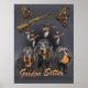 Gordon Setter Posters, prints and greeting cards featuring three Gordon Setter Hunting Dogs with pheasants and gun.
