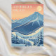Snowy mountains of Gore Mountain, New York, Adirondack mountains! We hope you're having a wonderful ski vacation. This postcard features a gorgeous blue-grey mountain landscape In front of a yellow orange sky.