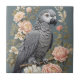 Gorgeous African Grey Parrot With Elegant Florals Ceramic Tile