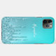 This pretty iPhone case design features faux aqua mint and turquoise dripping glitter metallic texture and elegant calligraphy font.