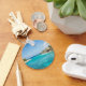 A keychain with a beautiful photo featuring a tropical beach resort.