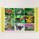 Jigsaw puzzle with 9 photos of gorgeous butterflies, among them the Old World swallowtail (Papilio machaon), yellow, black, blue, and red; the peacock butterfly (Aglais io), red with colourful round spots; the black-and-blue blue tiger butterfly (Tirumala limniace), the buckeye butterfly (genus Junonia), brown with colourful round spots; and the fritillary butterfly, yellow with black spots. This 1,014-piece jigsaw puzzle is usually suited for children aged 12 and up.