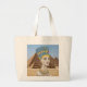 This tote bag features a colorful Sketch of the Egyptian Queen Nefertiti, the wife of the powerful pharaoh Akhenaten, against the Egyptian Pyramids. Nefertiti was famous for her great beauty.