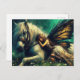 A beautiful fairy fell asleep on a mossy patch in the forest using her horse as a pillow