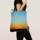 Gorgeous Glowing Moony Sunset Tote Bag. Keep yourself peaceful in this beautiful sunset with a sliver of the moon design with blues, greens, orange and reds.