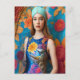 An image of a gorgeous lady with tattoo, green headband and beautiful blue dress. This is an AI generated artwork with a floral theme.