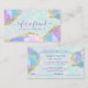 This stunning referral card captures the magical iridescence of an opal gemstone. The design features a captivating blend of pastel colours, predominantly purples, blues, and pinks, with accents of gold adding a touch of luxury. The shimmering, multi-faceted effect creates a truly unique and eye-catching look. This modern card is perfect for businesses wanting to project a sense of elegance, creativity, and sophistication, such as a hair stylist, makeup artist, spa, or salon.