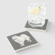 The coasters are gorgeous, a quality feel and heavy weight. They look like a precious archeological find. A rustic stone juxtaposed with a modern floral black and white print. I like the way the print goes slightly imperfect on the cut stone edges giving them a kind-of natural beauty.