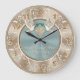 You (or Designer Linda) can change the lovely dusty soft blue green centre accented by the Love Doves joining their lives together as one over the taupe coloured heart. The clock is surrounded with a gentle neutral Taupe Champagne wedding colour with ecru swirls.