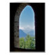 Seen from an outside passage around a mountain church over Montreux, Switzerland, the vista of the Swiss Alps stretches for miles - you can inhale the pure mountain air just thinking about it!