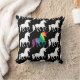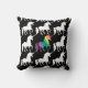 Fun Black and White Rainbow Unicorn Pattern Pillow. Stylish black and white unicorn pattern covers the front and back of this fun pillow. One bright and colourful rainbow unicorn in watercolor brushstroke stands out in the centre on each side. Red, orange, yellow, green, blue, and purple unicorn adds a splash of fun to the monochrome design. Gorgeous, modern and stylish unicorn designs.