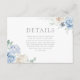 Gorgeous White & Blue Floral Wedding Details Enclosure Card