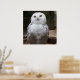 This gorgeous owl poster is simply beautiful, The owl has yellow eyes with a white 'face' and chest - lines of brown go through the white on the rest of the bird.