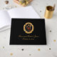 Capture the essence of your Gothic-inspired wedding with our Gorgeously Gothic Candles and Roses Wedding Reception Guest Book. This exquisite guest book features a captivating motif of candles and roses, elegantly framed within a finely crafted gold and black oval border. Three softly lit black candles, nestled in their sophisticated holders, cast a mysterious glow, while two crimson roses add a touch of passion to the scene.
