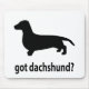 Got Dachshund? Simple and unique design of a Dachshund, Doxie, Dackel, Teckel, Tekkel, Wiener Dog/Hotdog, and Sausage Dog silhouette with the got milk parody statement in bold letters below. Show your love of this dog breed with this bold statement today!
