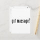 Fashioned after that very popular advertisement, we've got this super cute "Got Massage?" design on tons of products so you can use it on your massage business cards, thank you cards, or give as client gifts. Available in black text or off-white.