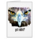 A colourfully rendered golden eagle with the words got rabbit? below it. The piercing golden eyes seem to stare right through you as if to say if you don't have rabbit, you'll do very nicely.